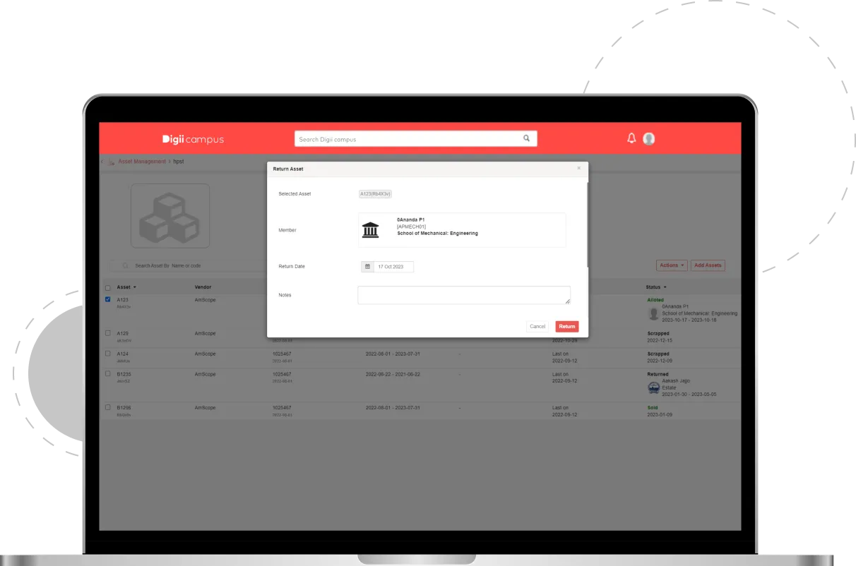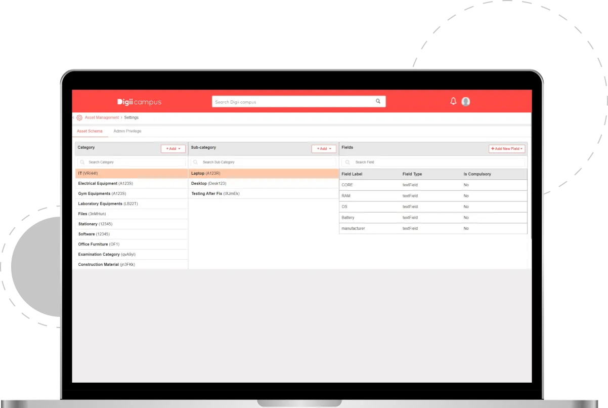Digiicampus’ Asset Management module makes it easier for institutions to manage and track their assets. Moreover, it makes handling assets effortless, simple, and effective and gives access to real-time data.