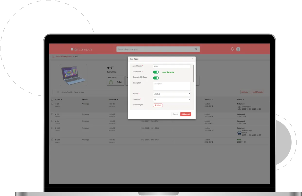 Ensure complete asset visibility and manage the asset lifecycle oversee the entire lifecycle of your assets, from inception to conclusion with Asset Management System by Digiicampus.