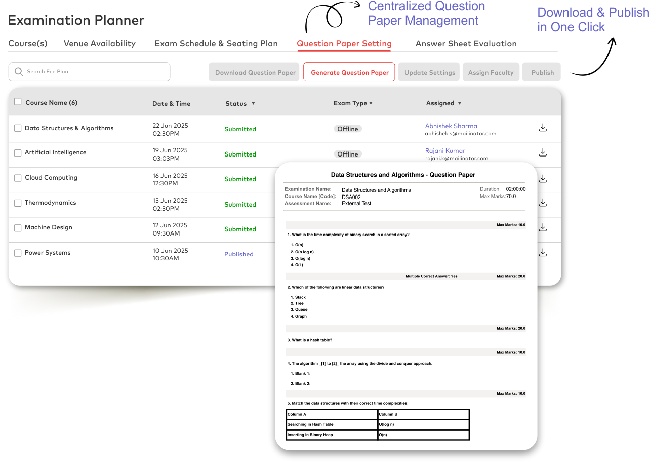 - Personalized seating plans & invigilator assignment