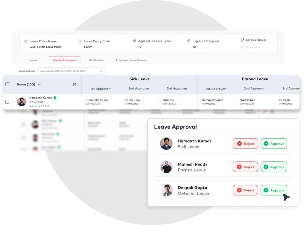 Standardise leave processes with clear policies and structured approvals, ensuring fairness, faster decisions, and error-free syncing with payroll and attendance.