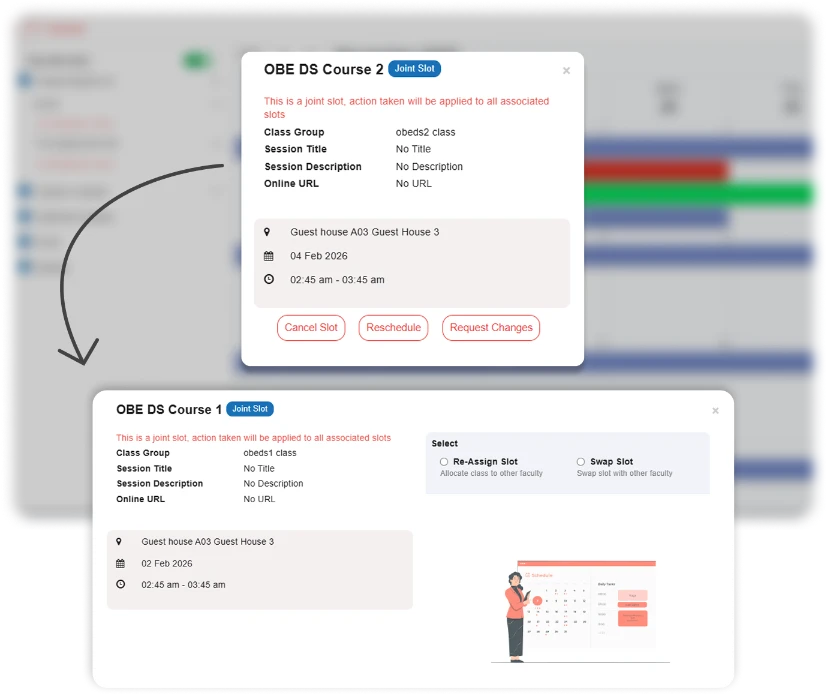 - Plan and manage faculty teaching slots with real-time availability in view