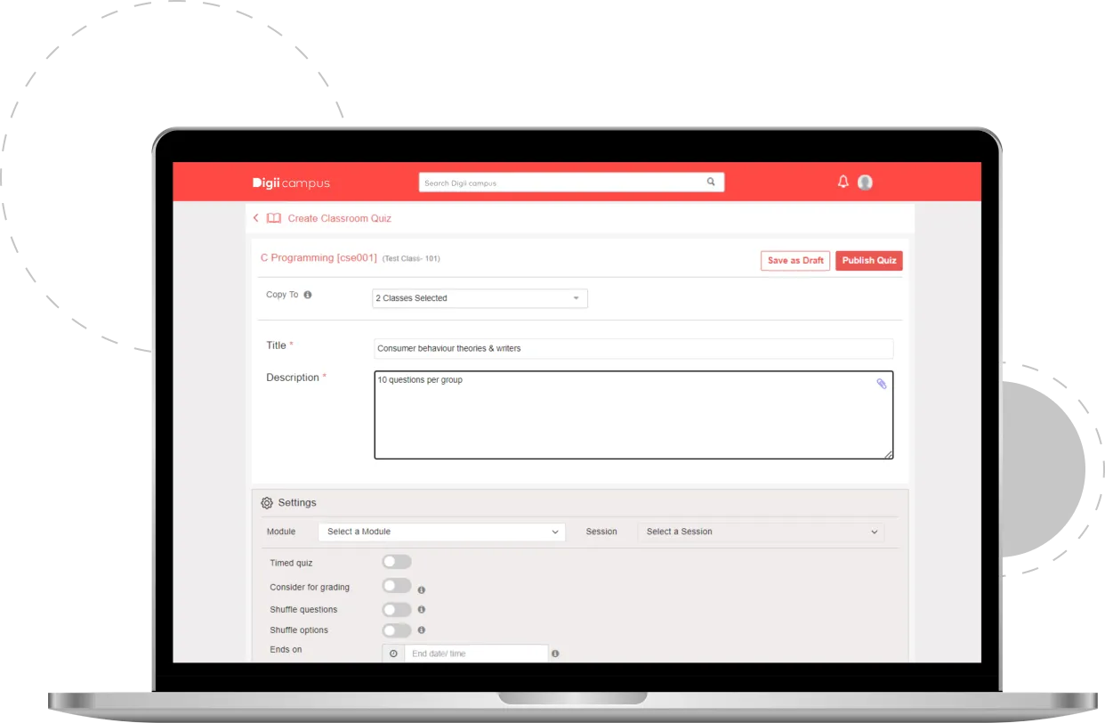 Digii partners with Turnitin to verify assignment originality. Additionally, educators can create quizzes, set timed rules, publish scores, and answer keys within Digii’s LMS.