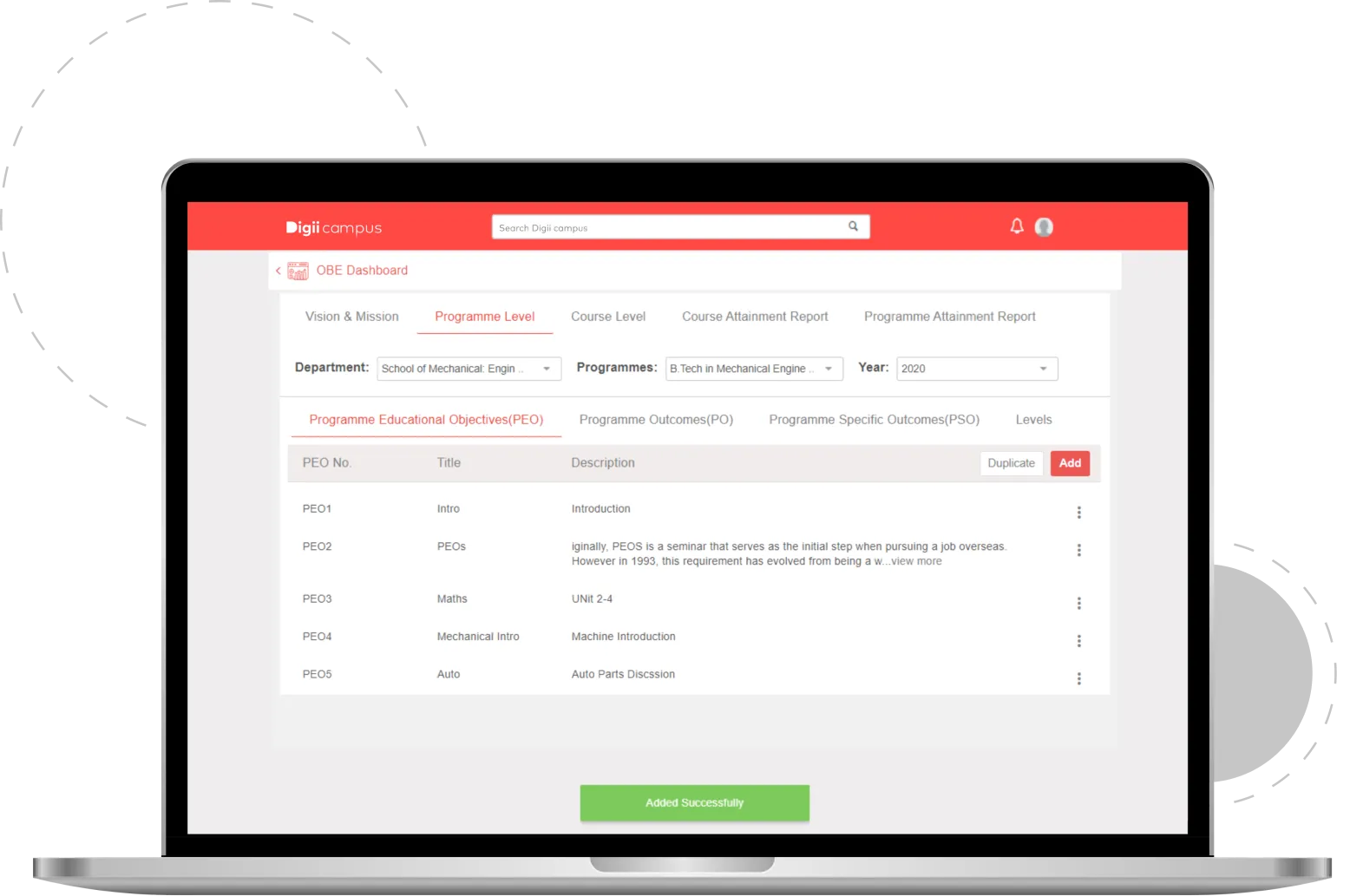 Digiicampus’ OBE module allows for the assessment of students’ progress and achievement through measurable outcomes.