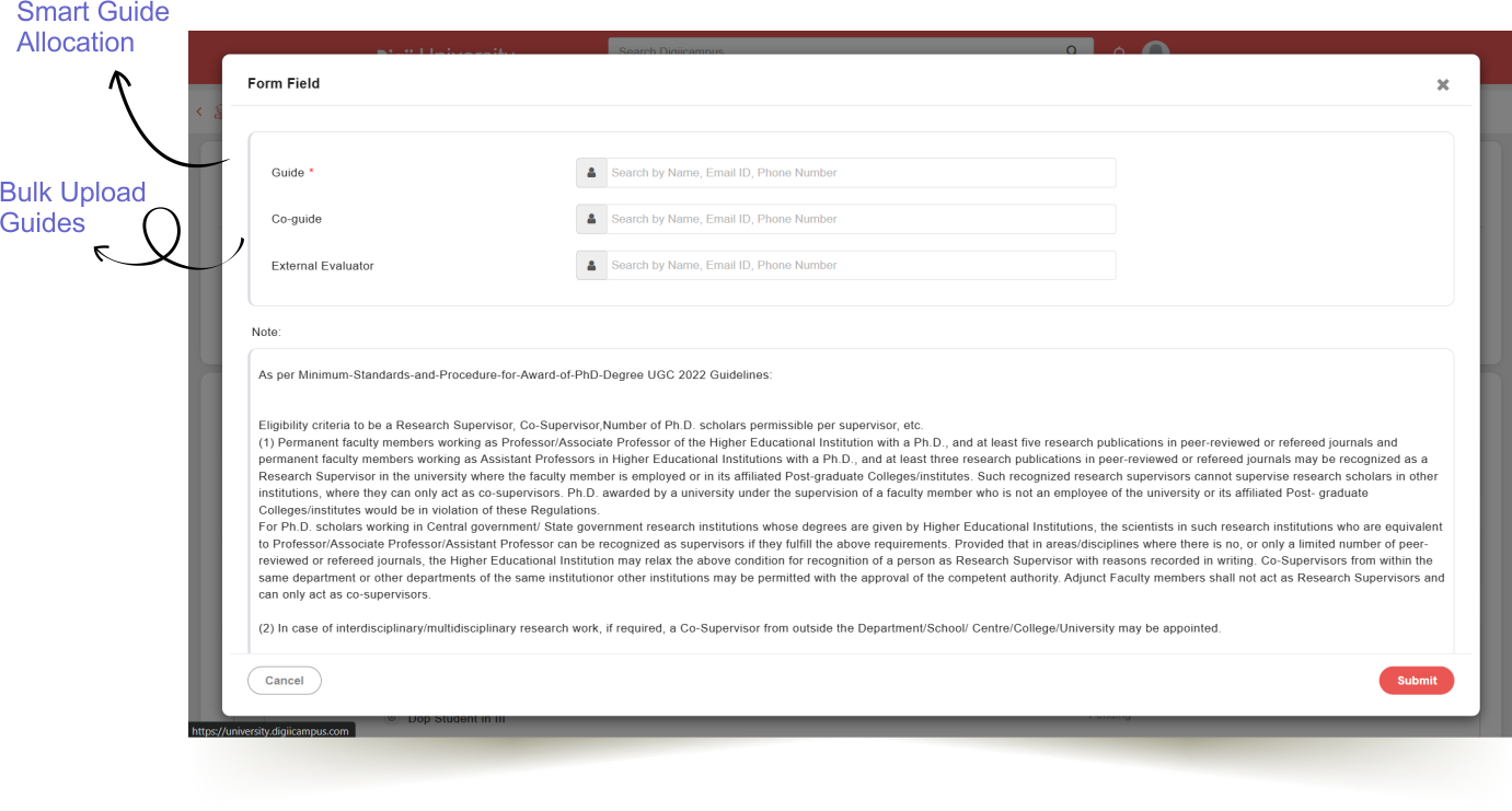 Streamline the process of assigning research supervisors and guides based on expertise and workload.